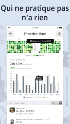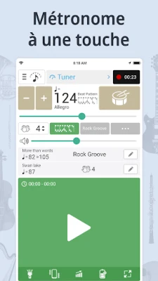 Affinez chaque note avec la haute précision de l'accordeur, offrant un mode chromatique pour une analyse détaillée de la hauteur et de l'intensité, ainsi qu'un diapason pour un réglage rapide. La fréquence A4 est entièrement personnalisable, vous assurant une harmonie parfaite quel que soit votre standard. Gravez vos performances avec l'enregistreur intégré d'une seule touche et enrichissez votre apprentissage en pratiquant directement avec les partitions disponibles ou vos propres créations. Le métronome, quant à lui, est conçu pour une fidélité impeccable, garantissant une synchronisation parfaite sans aucun décalage, avec un contrôle précis du BPM et un détecteur intelligent pour suivre votre rythme. **Accordeur et Métronome** est l'allié essentiel pour structurer votre entraînement, suivre votre progression et élever votre art musical.