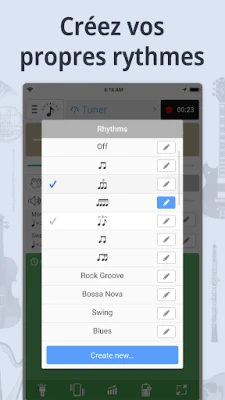 Simplifiez chaque étape de votre séance grâce à une interface épurée où une seule interaction suffit pour activer les fonctions clés. D'un simple geste, lancez ou suspendez le métronome, allumez l'accordeur, ou choisissez parmi des modes rythmiques variés. **Accordeur et Métronome** brille également par son métronome intelligent : avec des options lumineuses et vibratoires, le mode flash se révèle un allié précieux dans les environnements bruyants, transformant le flash de votre appareil en un repère visuel clair et indéniable. Que vous jouiez du piano, de la guitare, du violon ou de tout autre instrument, y compris les instruments transpositeurs, l'application s'adapte à vos besoins avec une polyvalence remarquable.