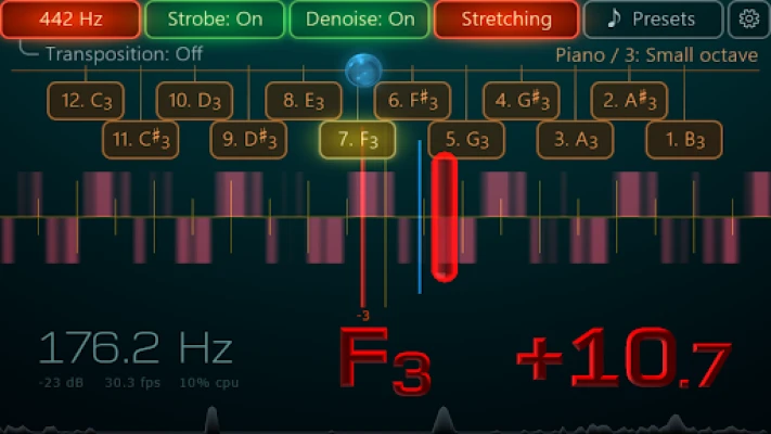 Loin de se limiter aux guitares, **Airyware Tuner** se révèle être un virtuose universel, prenant en charge plus de 400 instruments orchestraux et folkloriques, enrichi de plus de 900 accordages alternatifs. Que vous soyez un pianiste, un violoniste, un flûtiste, un joueur de cornemuse, un violoncelliste ou un mandoliniste, cet accordeur s'adapte à chaque nuance instrumentale. Il offre également une flexibilité inégalée avec des tempéraments, des adoucisseurs et des accordages étirés entièrement personnalisables, sans oublier la détection avancée de l'inharmonicité des cordes et la définition de courbes Railsback. Analysez chaque vibration avec l'inspecteur de forme d'onde et la carte thermique des fréquences fondamentales, pour une maîtrise totale de votre son.