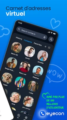 L'intelligence artificielle d'Eyecon apprend de vos habitudes, optimisant l'affichage de vos contacts les plus sollicités et les icônes de communication préférées pour une efficacité maximale. Curieux de savoir si un ami est disponible ? Utilisez notre fonction de vérification de disponibilité non-intrusive, permettant à vos proches de vous signifier s'ils peuvent répondre, rappeler ultérieurement ou sont occupés, le tout sans contrainte. Amusez-vous à parfaire votre répertoire grâce à notre jeu unique qui vous invite à évaluer et découvrir de nouvelles photos pour vos contacts. Et après une nouvelle rencontre, ajoutez un contact en un clin d'œil : Eyecon suggère un nom et une photo après un appel, vous épargnant toute saisie. La connexion à Eyecon est un jeu d'enfant et respecte votre vie privée : un simple numéro de téléphone suffit, sans synchronisation forcée avec des médias sociaux tiers ni processus d'inscription fastidieux.