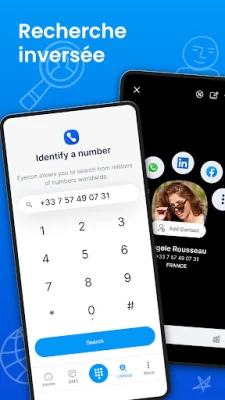 Eyecon enrichit vos contacts, cadran et carnet d'adresses avec des photos automatiques. Identifiez facilement les appels entrants grâce à notre identification de l'appelant, affichant noms et images. Unifiez vos applications de communication préférées pour une gestion simple et tout-en-un.