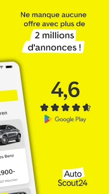 Avec AutoScout24, acheter et vendre devient une expérience fluide et transparente. Explorez plus de deux millions d'annonces grâce à un système de recherche intuitif et des filtres précis, et plongez au cœur des véhicules avec la réalité virtuelle immersive d'AutoScout360°. Pour les vendeurs, AutoScout24 simplifie la mise en ligne de votre annonce, offre une estimation gratuite et rapide de votre véhicule d'occasion, et vous connecte à un vaste public d'acheteurs potentiels. Bénéficiez également d'une option de reprise simplifiée auprès de garages vérifiés, assurant une transaction sereine et efficace.