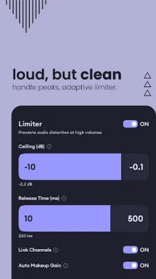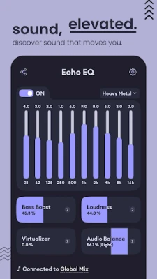 Au cœur de *Echo Equalizer: Bass Booster* se trouve un égaliseur graphique à 10 bandes, vous donnant un contrôle millimétré sur chaque fréquence. Sculptez votre son idéal, des basses puissantes et vibrantes aux aigus cristallins, en passant par un médium parfaitement équilibré. L'amplificateur de basses dédié insuffle une nouvelle vie à vos pistes, délivrant des résonances profondes et percutantes qui se ressentent au plus profond de vous. Parallèlement, notre amplificateur de volume élève le niveau sonore sans aucune altération indésirable, garanti par un limiteur intelligent qui préserve l'intégrité de l'audio. Profitez d'une qualité sonore digne d'un studio, que vous utilisiez des écouteurs, des enceintes Bluetooth ou le système audio de votre véhicule.